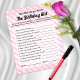 Testez vos connaissances et voyez à quel point vous connaissez bien la fille d'anniversaire avec How Well Do You Know the Birthday Girl? Jeu de fête personnalisable ! Doté d'un design ludique avec des rayures roses et des accents de parties scintillant, ce jeu ajoute une touche amusante à toute célébration d'anniversaire. Les invités répondent à une série de questions personnalisables sur la fille d'anniversaire, et la personne avec les réponses les plus correctes gagne! C'est une façon fantastique de briser la glace et de créer des souvenirs durables. Idéal pour les anniversaires, les douches, et plus encore, ce jeu fera divertir et rire tout le monde. Personnalisez les questions pour rendre le jeu encore plus spécial et adapté à votre événement!