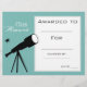 Un prix universitaire de classe décerné avec une image de thème de la science télescope pour encourager un jeune étudiant en sciences ou en astronomie. Vous pouvez écrire dans vos propres détails. Une excellente ressource pour n'importe quel type de professeur de classe.