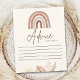 Dé tu consejo a esta futura mama con esta tarjeta de consejo de ducha de personalizable. Presenta una Linda Tematica estilo boho con un lindo arcoiris y vegetacion en tonos cafe. Personalice esta tarjeta de consejo para baby shower su propio texto. Esta tarjeta de consejo floral es perfecta para un baby shower de niño o niña