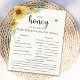 Diseño para juego de predicciones del bebe con una Hermosa Tematica de Flores de Girasol y abejas con la Frase " A LITTLE HONEY IS ON THE WAY". con linda tipografia en color negro y un fondo amarillo claro es ideal para recibir a esa trozo de miel que viene en camino!. Este es un juego perfecto para jugar durante el baby shower y sin duda será un gran placer. La tarjeta pide a los invitados que predigan cómo sería el bebé.