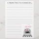 Papier recette avec lignes optionnelles, qui peut être enlevé. En bas, on peut voir l'illustration d'un poêle d'inspiration rétro avec un pot rose sur le brûleur avant gauche. Texte du haut : "Une recette de la cuisine de..." Personnalisez avec votre nom au-dessus du poêle au fond. Recherchez le classeur de recettes correspondant (ci-dessous.) com