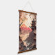 Une belle tapisserie en bois marron surmontée d'une scène découpée en papier représentant l'ancienne construction chinoise, les arbres, les montagnes et le lac.