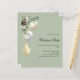 Pour une fête de Noël en famille et entre amis. Un élégant arrière - plan moderne et sage vert. Décoré de billes d'or et de blanc, de verdure et d'un cône de pin. Personnalisez et ajoutez les détails. 1 feuille = 1 invite imprimé bord à bord.