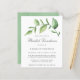 Invitation de mariage budget rustique avec un design simple avec une aquarelle verte peinte avec de grands feuilles, sur un arrière - plan blanc. Vous trouverez ci-dessous les détails de votre événement dans un gris doux et le côté arrière a un lave-aquarelle vert clair. Un design botanique élégant qui est parfait pour une fête en été. Ces invitations à déjeuner nuptiales bon marché sont imprimées sur des feuilles de papier pour une option économique.
