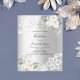 Une élégante invitation au baptême, neutre du genre. Un arrière - plan faux argenté décoré de fleurs blanches, de roses, de dentelle et d'une croix. Personnalisez et ajoutez un nom et des détails. 1 feuille = 1 invite imprimé bord à bord.