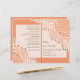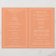 Elégante dentelle blanche avec perles corail orange mariage cérémonie et programme plié soirée avec dentelle blanche avec perles beige/ecru sur corail orange qui couvre deux coins d'un rectangle blanc avec bordure corail orange. Texte en marron. Notez que la dentelle est "imprimée sur" et non un tissu réel. Cet élégant design sophistiqué et romantique fait partie d'un ensemble mariage et est parfait pour un mariage chic printemps, été ou automne/automne. Vous devrez plier dans le centre pour avoir un programme plié. Choisissez seulement le type de papier de valeur comme il se plie bien.