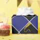 Emballage cadeau de remise de diplômes créatif et décoration de fête avec capuchon de graduation noir et modèle de gossel or sur un arrière - plan bleu. Modifiez le texte pour ajouter le nom du diplômé principal.