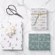 Joli papier d'enveloppement de Noël vert. Un joli papier d'emballage illustré présente des botaniques verts sauge, des scènes d'hiver et des "ho ho ho ho ho" en typographie colorée.