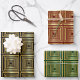 Des feuilles de papier cadeau décoratives et élégantes, en noir, vert et rouge, avec des carrés dorés, étroitement liés, pour produire une illusion 3D captivante.