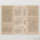Dépliant rustique triptyque avec un fond en papier brun faux. La couverture comporte le nom de votre entreprise avec des fioritures dans une police de caractères cursifs élégants ainsi que votre titre ou service. Le panneau arrière contient vos coordonnées et le panneau plié interne comporte deux en-têtes et des zones de texte. L'intérieur comprend de multiples modèles pour les informations relatives à votre entreprise sur les panneaux extérieurs et une liste de prix dans le panneau central. Ce design simple et féminin est idéal pour une entreprise d'artisanat fait-main.