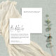Script noir blanc Détails du Mariage Boîtier. Un prix économique PETIT 4,5 po x 5,6 po alternatif. Disponible dans un STOCK SEMI-GLOSS 110 lb CARD qui est l'option par défaut (plus épais pour les invitations), OU un STOCK SATIN FINISH 80 lb THINNER PAPER (idéal pour les boîtiers). Les enveloppes sont en option et légèrement plus grandes que la taille de la carte. L'en-tête est dans un élégant style d'écriture avec les détails en dessous et beaucoup d'espace blanc sur une forme carré pour un style contemporain. Personnalisez facilement avec vos propres détails.