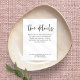 Informations simples sur le Mariage de script noir et blanc. Une alternative de prix budgétaire. Disponible dans un STOCK CARTE SEMI GLOSS 110 lb qui est l'option par défaut (recommandé pour les invitations), OU un STOCK PAPIER THINNER SATIN FINISH 80 lb (idéal pour les boîtiers). Les enveloppes sont en option et légèrement plus grandes que la taille de la carte. Une élégance simple pour donner à vos invités les informations dont ils ont besoin pour votre jour de mariage, avec une typographie en noir pour le titre principal Les détails complétant le reste du texte que vous pouvez facilement personnaliser.