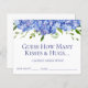 Cette belle hydrangée bleue florale hydrangée Devinez combien de baisers et de Fêtes des mariées de câlin la carte de jeu est parfaite pour votre wedding shower! Il suffit de remplir un bol, un panier ou un bocal avec les baisers et les câlins de Hershey et d'avoir ces draps à proximité. Comme les invités se mélangent pendant la fête, ils prennent une devinette sur le nombre de il ya et mettre là devinez et nom sur une feuille. La personne qui a le devin le plus proche gagne les baisers et les câlins.