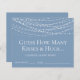 Cette belle et moderne lumière bleue poussiéreuse Devinez Combien de baisers et de câlins Fête des mariées Game Card est parfait pour votre wedding shower! Il suffit de remplir un bol, un panier ou un bocal avec les baisers et les câlins de Hershey et d'avoir ces draps à proximité. Comme les invités se mélangent pendant la fête, ils prennent une devinette sur le nombre de il ya et mettre là devinez et nom sur une feuille. La personne qui a le devin le plus proche gagne les baisers et les câlins.