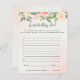 Cette carte de jeu pour baby shower présente de belles roses et pivoines à l'aquarelle pastel dans des nuances de rose blush et de pêche avec des feuilles botaniques vertes luxuriantes et de l'eucalyptus.