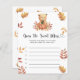 Célébrez avec cette soirée baby shower à thème d'ours en peluche! Aquarelle mignon ours en peluche avec un citrouille d'automne dans ses pattes est assis sur le feuillage d'automne. Au verso de la carte se trouvent les feuilles d'automne. Éléments correspondants disponibles.