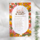 Un jeu de devinez rétro qui correspond à notre "Hello Baby" | Super Retro Flowers Boho Baby shower" invitations. Affichez la collection liée sur cette page pour les éléments correspondants. Ce design est composé d'un arrière - plan super à motifs floraux, avec une couverture ovale blanche au centre. La palette vintage et chaleureuse des tons marron, jaune, orange, crème et vert donne une touche les années 70. Le motif de marguerite fleurie est un motif de puissance de fleurs dessiné à la main avec des couleurs audacieuses et des contours forts pour correspondre au style hippie des années 70. A l'intérieur du cadre ovale, il y a de l'espace pour 15 questions de votre choix.