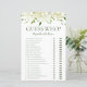 Qui Devine ? Shower Game sheet apportera beaucoup de plaisir et de rire à votre wedding shower! Il met les invités au défi de deviner si la mariée ou le marié a fait quelque chose d'abord dans leur relation. La page est à la fois élégante et charmante. Son design magnifique avec des hydrangées blanches multicolores, des parfums délicats de verdure naturelle dans un style aquarelle contemporain, et des bandes vertes coordonnées sur le dos est parfait pour tout boho, rustique, botanique, floral, jardin, mariage romantique, vintage ou formel. C'est un jeu parfait pour n'importe quel type de douche nuptiale/couple. Pour faire de ce jeu votre propre sélectionnez Personnalisez ce modèle et tapez les noms de la mariée et du marié.