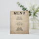 Retro, vintage des années 1800 recherchait un menu mariage à poster avec un arrière - plan en détresse. Personnalisez-le avec les détails de votre événement.