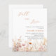 Une élégante invitation de douche de mariée thème automne. Fond blanc. Décoré de fleurs sauvages aquarellées en beige, rose.