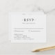 Ce design de carte RSVP mariage élégant et abordable présente une disposition minimaliste en noir et blanc qui allie élégance intemporelle et clarté moderne. L'un des côtés présente un délicat dessin de colombe et de crête florale au-dessus des noms du couple et de la date mariage, créant une touche raffinée et personnalisée. L'autre côté présente un formulaire RSVP propre et organisé avec espace pour les réponses des invités, les sélections de repas et une date de réponse. Parfaitement adapté au reste de la suite mariage de coordination, cette RSVP budget maintient une esthétique cohésive idéale pour les mariages formels, romantiques ou de destination, offrant à la fois style et fonction pour une expérience client magnifiquement rationalisée.