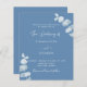 Arrière - plan bleu poussiéreux, décoré de tiges d'eucalyptus, sprigs. Personnalisez et et vos noms et les détails. Dos : arrière - plan bleu poussiéreux.