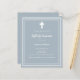 Arrière - plan bleu Dusty, décoré d'un cadre blanc, et d'une croix blanche Personnalisez et ajoutez le nom et les détails. Texte blanc. 1 feuille = 1 invite imprimé bord à bord.