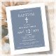 Papier abordable personnalisable, invitation au baptême, avec une bordure blanche propre et un arrière - plan bleu poussiéreux, avec une simple croix blanche