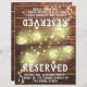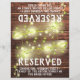 Épais 110 livres Papier pliable panneau réservé - mariage campagnard rustique en bois mason chaîne de lampes branche arbre avec feuilles verts pliant signe réservé. Le cordon lumineux illumine les feuilles verts contre un beau bois rustique brun foncé. Ce design mariage rustique est personnalisable et parfait pour votre beau mariage campagnard extérieur ou mariage occidental. Vous pouvez personnaliser en modifiant le texte et en ajoutant des images si vous le souhaitez. Vous pouvez également choisir un type et une épaisseur de papier différents. Pour les articles correspondants, veuillez consulter la collection ci-dessous avec d'autres articles dans la suite mariage rustique.
