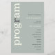 Paper Simple Sage Elfenbeintext Hochzeitsprogramm. Ein großes Preis-Leistungs-Verhältnis PAPER (nicht Karte) Alternative zu einem günstigen Preis. Modernes typografisches Design mit Programm in großer Typografie in Elfenbein mit dem "r" in Grau, rotiert und auf der links Seite auf einem Hintergrund von hellgrünen Salbei. Hintergrund- und Textfarben können auf Wunsch über Weitere Anpassungen geändert werden.