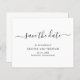 Mariage simple sans photo budget Enregistrer la Date avec un design épuré et minimaliste avec une touche élégante avec "enregistrer la date" en script avec des swashes. Un moderne noir et blanc Enregistrer la Date sans images qui se coordonne magnifiquement avec n'importe quel style de mariage.