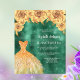 Une invitation moderne, élégante et glamour pour une Quinceañera, 15ème anniversaire. Un arrière - plan vert émeraude clouté avec un faux or une robe et des roses, des fleurs. Le nom est écrit avec un script de style moderne écrit à la main. Personnalisez et ajoutez les détails de votre fête. 1 feuille = 1 invite imprimé bord à bord.