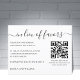 Voici notre carte mariage exquise ! Conçu avec un script noir minimaliste et élégant, cette carte enchanteresse porte un message sincère. Invitant chaleureusement vos invités à prendre part à votre initiative "Au lieu de Faveurs", il symbolise l'importance de rendre en retour. Découvrez le mélange parfait d'élégance intemporelle et de technologie de pointe. Notre carte intègre un code QR personnalisé, vous permettant de créer une expérience unique et interactive. Entrez simplement l'URL de votre code QR, et regardez vos invités immergés dans l'impact de votre cause choisie. L'utilisation d'un code QR sur une carte "au lieu d'une carte de faveurs" peut varier en fonction de vos intentions et objectifs spécifiques. Voici quelques objectifs communs pour l'utilisation d'un code QR dans ce contexte : 1- Fournissez des informations : Avec une simple analyse, vos invités peuvent accéder à des détails supplémentaires sur la cause que vous supportez. Découvrez sa mission, comprenez l'impact qu'elle engendre et apprenez comment leurs contributions seront utilisées. Laissez-les se lancer dans un voyage de connaissance et d'inspiration. 2- Diriger les invités vers une page de don : Grâce à la puissance du code QR, les invités peuvent contribuer de manière transparente à votre organisme de bienfaisance ou à votre cause. En établissant un lien direct vers une page de don, il simplifie le processus et leur permet de faire une différence significative. 3- Partagez des histoires ou des témoignages : Plongez dans les récits personnels qui éclairent l'importance de votre cause. Liez le code QR à des vidéos ou des sites web présentant des histoires touchantes, des témoignages sincères et des expériences inspirantes liées à la cause que vous soutenez. Que leurs coeurs soient bougés et leurs esprits élevés. Tous les styles, couleurs et tailles de texte peuvent être modifiés selon vos besoins. Si vous avez besoin d'aide ou d'articles correspondants, n'hésitez pas à me contacter.