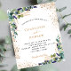 Un arrière - plan blanc décoré de verdure d'eucalyptus et de feuillage doré. Personnalisez et ajoutez vos noms et les détails du mariage. Lettres noires et dorées. Retour : ajoutez votre weburl à votre site mariage pour RSVP ou détails.