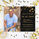 Sur le devant : Ajoutez une photo de taille verticale. Une couleur de fond noir classique, décorée d'étoiles dorées factices. Personnalisez et ajoutez un nom et des détails. Lettres dorées. Pour lui et pour elle.