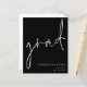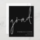 Un prix économique PETIT 4,5 po x 5,6 po alternatif. Disponible dans un STOCK SEMI-GLOSS 110 lb CARD qui est l'option par défaut (plus épais pour les invitations), OU un STOCK SATIN FINISH 80 lb THINNER PAPER (idéal pour les boîtiers). Les enveloppes sont en option et légèrement plus grandes que la taille de la carte. Cette simple typographie blanche sur le design noir classique pour annoncer la nouvelle de votre diplômé a établi un script de style d'écriture à la main informel pour l'en-tête principal, grad, et facile à personnaliser typographie en bas à droite avec vos détails et aussi votre message au dos.