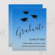 Budget Blue Graduation Faire-part. Envoyez à votre famille et à vos amis cette carte de faire-part simple et moderne. Ce design présente un ciel bleu avec des casquettes gris dans l'air ! Personnalisez avec votre nom, votre école et votre année.