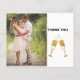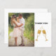 Express votre gratitude dans le style avec cette carte de remerciement élégante, parfaite pour les mariages ou les occasions spéciales. Avec une photo romantique d'une mariée et d'un marié, accompagnée d'un toast au champagne pétillant, cette carte capture la joie de votre célébration. Entièrement personnalisable avec vos noms et vos messages, c’est une belle façon de remercier vos invités pour leur participation à votre journée spéciale."
