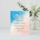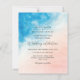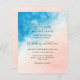 Plage aquarelle et faire-part de mariage océanique. L'Elégante eau bleue passe au-dessus du sable de parties scintillant rose et or pêche. Personnalisez en ajoutant tous les détails de votre événement.