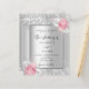 Faux arrière - plan d'aspect argent décoré de fleurs rose et blanche, fleurs et parties scintillant faux argent, scintille. Personnalisez et ajoutez vos noms et les détails du mariage. Lettres noires.