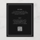 Ces invitations de mariage tout-en-un élégantes, modernes et économiques sont imprimées sur une feuille de papier. Elles présentent un design de texte minimaliste blanc simple sur un arrière - plan noir foncé, avec un cadre classique à la bordure. Ajoutez vos initiales ou votre monogramme pour les rendre complètement vôtres. Le verso de l'invitation permet d'ajouter des détails sur les invités, ainsi qu'un code QR scannable pour que les invités puissent RSVP en ligne sur votre site mariage.