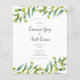 Une invitation de mariage champêtre chic et économique avec des feuilles de eucalyptus fraîches et naturelles, encadrant vos informations de mariage dans une écriture élégante et une typographie classique. Le verso présente une couleur verte naturelle assortie qui peut être personnalisée pour correspondre à votre thème de mariage ou vous pouvez même ajouter votre propre photo ou des informations complémentaires sur le mariage. Conçu par Thisisnotme
