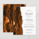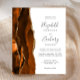 Le bord gauche de cette élégante faire-part de mariage moderne est orné d'une bordure d'aquarelle orange brûlée, recouverte d'une parties scintillant en faux or. Le texte personnalisable combine écriture manuscrite grise au fusain, cuivre et polices italiques. L'envers est assorti d'une agate orange brûlée et dorée.