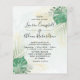 Design tropical élégant et sophistiqué en aquarelle. Ce design présente un grand monstère et un feuillage tropical en aquarelle sur un arrière - plan d'aquarelle texturé. Coloris vert et or sur l'avant et feuillet à deux tons sur l'arrière. Facile à modifier avec vos détails uniques.
