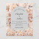 Une invitation moderne, design et romantique à une mariage. Un cadre en arc gris, décoré de doux dorés roses clairs, de fleurs roses et crème. Personnalisez et ajoutez vos noms et les détails. 1 feuille = 1 invite imprimé bord à bord.