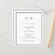Ces invitations de mariage tout-en-un élégantes, modernes et économiques sont imprimées sur une feuille de papier. Elles présentent un design minimaliste simple en noir et blanc, avec un cadre classique à la bordure. Ajoutez vos initiales ou votre monogramme pour les rendre complètement vôtres. Le verso de l'invitation permet d'ajouter des détails sur les invités, ainsi qu'un code QR scannable pour que les invités puissent RSVP en ligne sur votre site mariage.