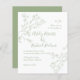 Sage ligne verte fleuris et initiales mariage de printemps monochrome Invitation. Ce faire-part de mariage présente de délicates fleurs d'art vert à la sauge dans un design monochrome, parfait pour une fête printanière économique. Le thème botanique est mis en valeur par des branches, des fleurs et des feuilles dans les coins supérieur gauche et inférieur droit, ajoutant une touche de nature. Les noms du couple sont magnifiquement affichés dans une police de script, ajoutant une sensation romantique et personnalisée. Les initiales du couple sont également incluses, ce qui rend l'invitation encore plus spéciale. Le verso de l'invitation comprend un code QR pour les RSVP en ligne. Le jeu de couleurs vert sage crée un look cohésif et élégant.
