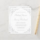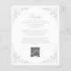 Cette élégante faire-part de mariage formelle d'inspiration vintage présente le texte en écriture gris argenté et les polices serif, encadrées par un délicat motif de vin argenté vintage. L'envers offre de l'espace pour les détails du mariage, ainsi qu'un code QR que les clients peuvent scanner pour visiter votre site Web et RSVP, ce qui permet d'économiser le coût d'impression et d'envoi de cartes RSVP séparées.