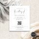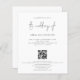 Un prix réduit de 4,5 x 5,6 pouces semi-brillant de 110 livres, semblable en épaisseur à une carte postale. Il y a UN par feuille. Faire-part de mariage de code QR de script élégant du budget. Ajoutez votre code QR à votre site Web mariage afin que vos invités puissent RSVP et voir tous les détails en ligne sans avoir besoin de pièces jointes séparées. Une typographie informelle en noir pour l'en-tête principal du Mariage De compléter le reste du texte que vous pouvez facilement personnaliser.