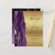 Le bord gauche de cette élégante faire-part de mariage moderne est orné d'une bordure d'aquarelle violette ornée d'une parties scintillant en faux or. Le texte personnalisable combine écriture noire en ardoise, copperplate et polices italiques sur un arrière - plan de fausse feuille d'or. L'envers est assorti d'une agate violette et dorée.